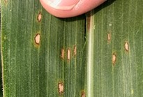 How to recognize it: Lesions first appear as tan narrow and long spots that are parallel to leaf margins. They expand into long “cigar shaped” tan to gray lesions that can be up to seven inches long. Symptoms will vary by hybrid, but can lead to large, fully covered areas on leaves that become dead tissue.