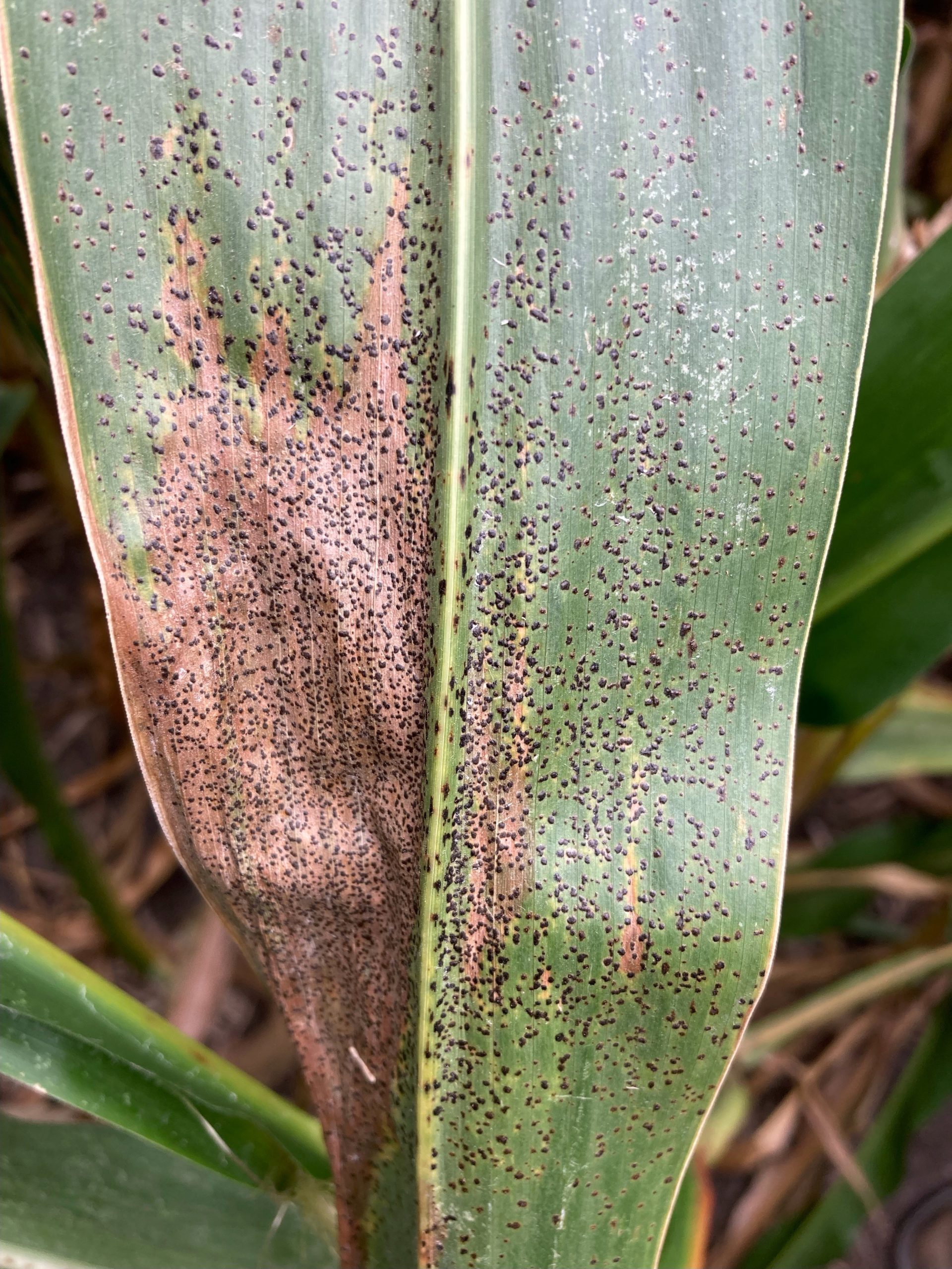 How to recognize it: Lesions first appear as small, hard-to-see pinpoints, but eventually the pinpoints mature into longer, more rectangular gray to brown spots. They expand parallel to major leaf veins and can be up to two inches long. Leaf tissue infection reduces a plant’s photosynthetic area, leading to lower carbohydrate production meant for grain fill, then more stalk rot and lower yields.