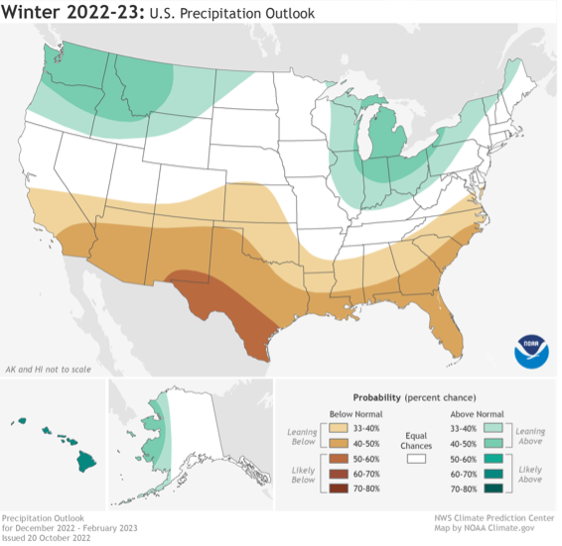 In drought-stricken regions, a few heavy snowfalls in early winter could raise overall water levels. Spring-planted crops can then use that extra groundwater to get an exceptional start to the growing season.